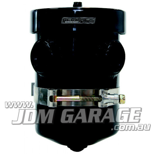Remote breather tanks with internal baffling are excellent when breathing your dry sump tank to atmosphere. Width 4.5″ (115mm) x Height 6.5″ (165mm).