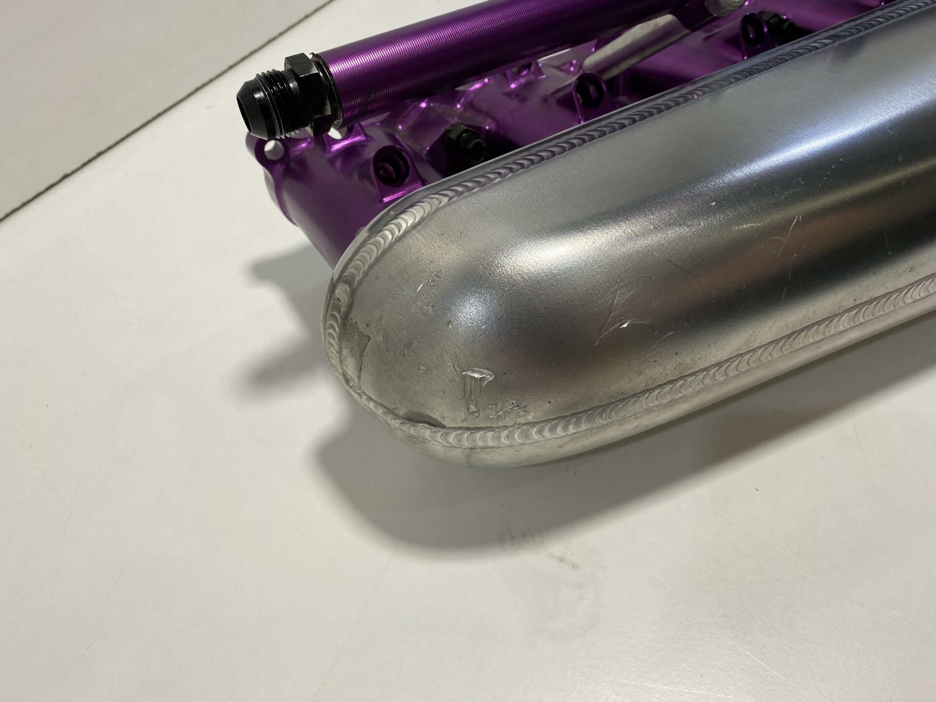 - Hypertune V2 intake manifold plenum, Anodized purple runners with raw manifold body, Some scratches at the rear wont see them once fitted